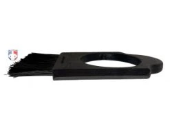 The Hole-E-Brush design for baseball has a large brush face, plate scraper and a 2 5/8″ molded gauge hole in the center for more accurate measuring, and a black nylon bristled brush.