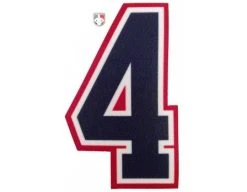 The 4″ Navy on White on Red precision-cut number is typicaly used on powder blue shirts with red-white-navy trim, white and red umpire shirts.