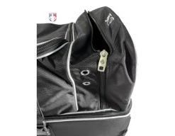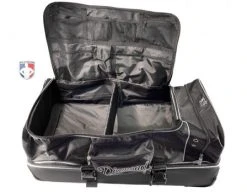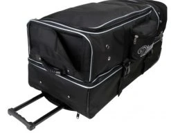This is the Diamond Umpire Wheeled Gear Bag with dual compartments that has been a deluxe, pro quality option for umpires to carry their gear and uniforms. It is the largest umpire gear bag on wheels that also has a telescopic handle.
