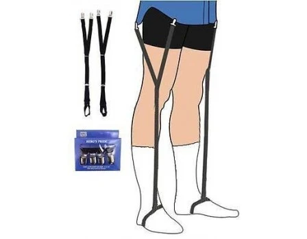 After putting on your socks and shirt, but before putting on your pants, simply slide each foot into the loop then pull the adjustable, elastic strap to fasten each clamp to the front and back of your shirt on each side. To work best, the strap should not be too loose or too tight. Your shirt will not come untucked and will always give you that tight military appearance.