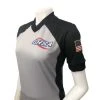 Approved Smitty Iowa Girls (IGHSAU) 1″ Stripe Men’s V-Neck referee shirt with side panels made from Body Flex fabric.