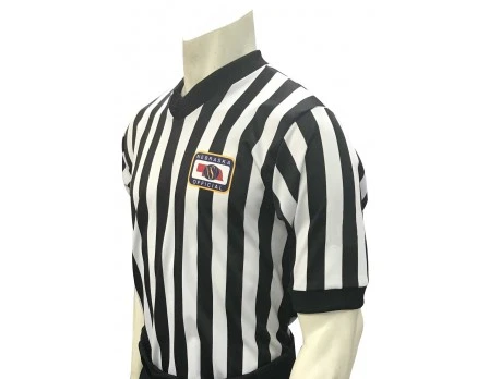 Approved Smitty Nebraska (NSAA) 1″ Stripe Men’s V-Neck referee shirt with Body Flex fabric.