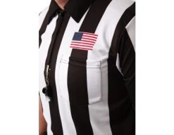 Want a crisper, more professional look on the field this season? These high performance 2 1/4″ stripe football referee shirts are dyed in a unique way to provide a vibrancy and durability that is unparalleled! Smitty’s dye sublimation process prints logos and flags directly onto the fabric ensuring this shirt can be worn and laundered time and time again without fading or peeling.