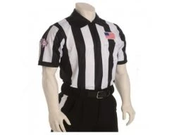 Want a crisper, more professional look on the field this season? These high performance 2 1/4″ stripe football referee shirts are dyed in a unique way to provide a vibrancy and durability that is unparalleled! Smitty’s dye sublimation process prints logos and flags directly onto the fabric ensuring this shirt can be worn and laundered time and time again without fading or peeling.