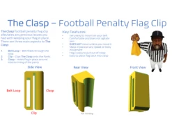 The Clasp, a revolutionary new accessory for football officials, fixes those problems. Simply clip it to your belt and securely tuck your penalty flag into place.