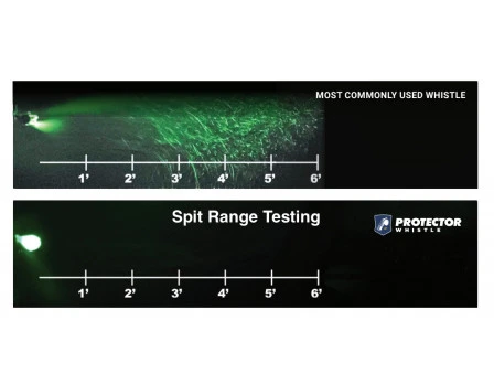 The Protector whistle is the first and only hygienically minded whistle. Whistle vents positioned underneath the mouthpiece, opposite traditional whistles, direct air particles & spit droplets down, away from players, fans, and your crew mates.