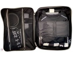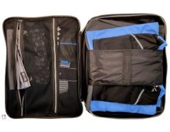 The main body secures your complete uniform: up to 4-5 items of shirts, pants and/or jackets. The top flap features two long zippered pockets for all your compression apparel, socks & more.