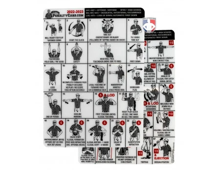 The Williams Penalty CardTMÂ is a valuable tool meant to help youth, high school and college football officials of all experience levels know the proper signal and yardage for assessing penalties. Use it as a reference or as an in-game tool.