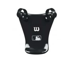 Tough, molded plastic in umpire throat guard won’t bend or break. 4″ with button-snap straps will fit any brand umpire mask. Available in black with MLB logo.