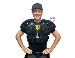 This is the Air Management System version of Wilson’s MLB West Vest Pro Gold 2 models. It maintains the A3210 model’s thick protective aerated foam padding and contoured plate patterns popular for many years with umpires at every level.
